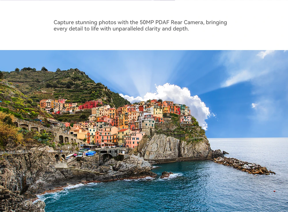 Capta fotos impresionantes con la cámara trasera PDAF de 50MP, que da vida a cada detalle con una claridad y profundidad sin igual.