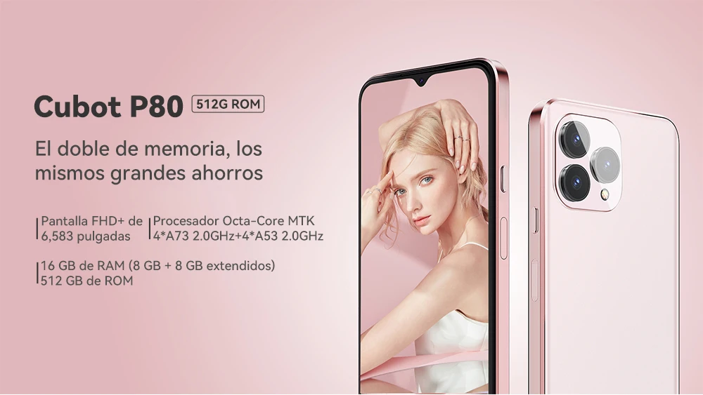 Comprar Cubot Smartphone Android P80 Versión Global [512GB RAM], 16GB RAM(8GB+8GB), Pantalla 6.583" FHD+, Cámara de 48MP, Octa-core, NFC, GPS