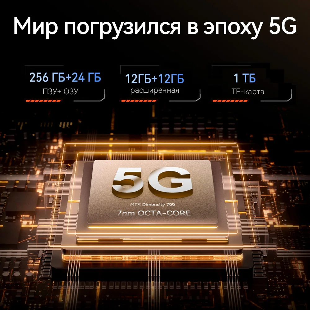 CPU: MTK Dimensity 700,Octa-Core, 7NM 2 * A76 2,2 GHz + 6 * A55 2,0 GHz