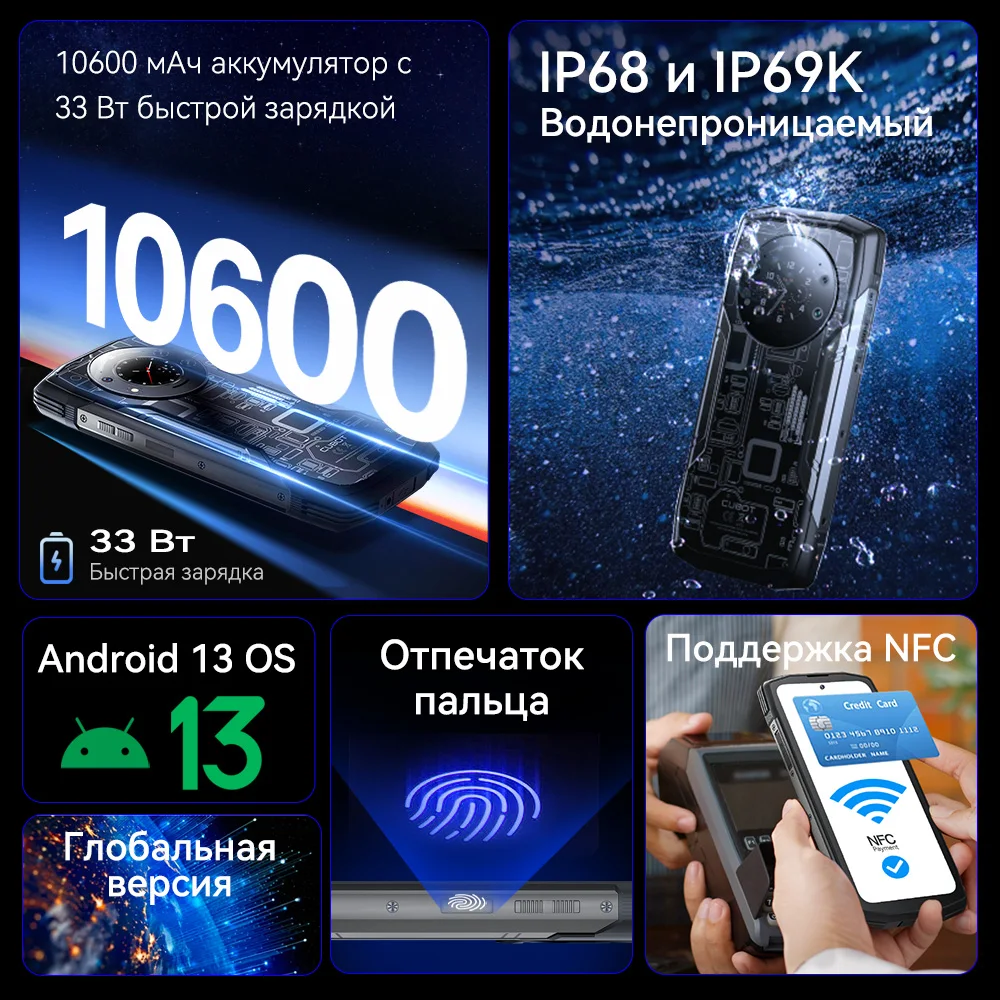 Comprar Cubot-smartphone KingKong Star, resistente al agua, 5G, 24GB(12GB + 12GB) de RAM, 256GB de ROM, batería de 10600mAh, pantalla 2K de 6,78 pulgadas, cámara de 100MP, NFC