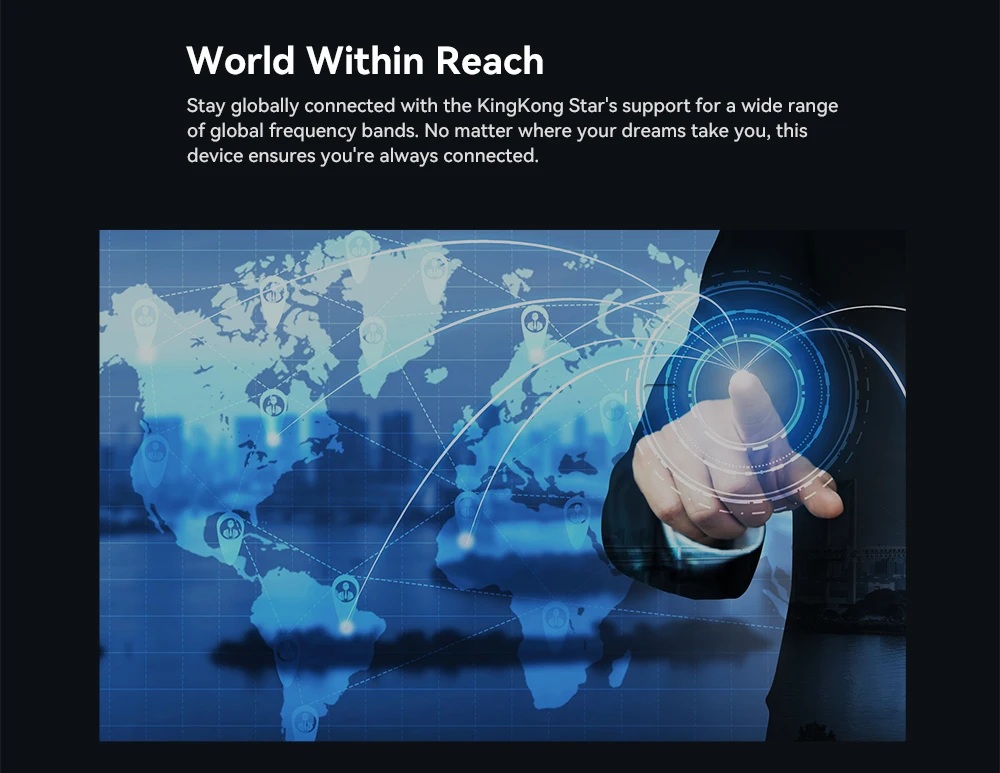 Manténgase conectado globalmente con el soporte de King Kong Star para una amplia gama de bandas de frecuencia globales. No importa dónde te lleven tus sueños, este dispositivo garantiza que siempre estés conectado.