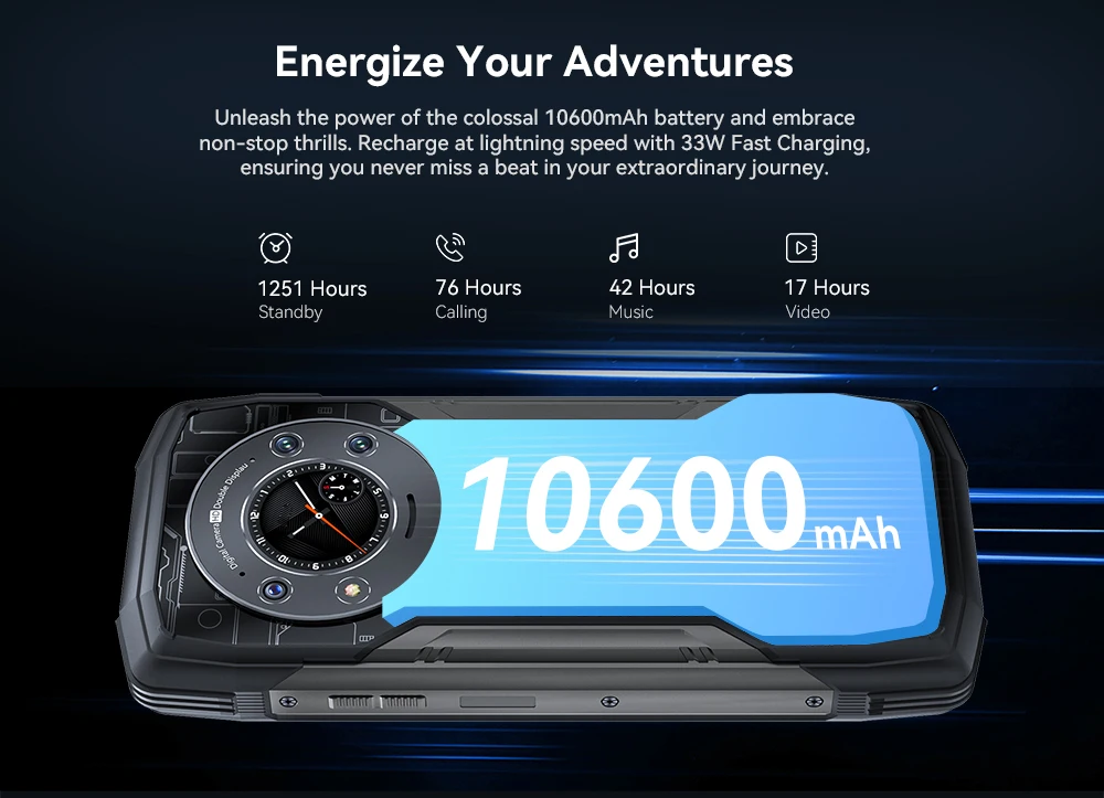 Libere la potencia de la colosal batería de 10600mAh y disfrute de la emoción sin parar. Recargue a la velocidad de la luz con la carga rápida de 33W, lo que garantiza que nunca se pierda el ritmo en su extraordinario viaje.