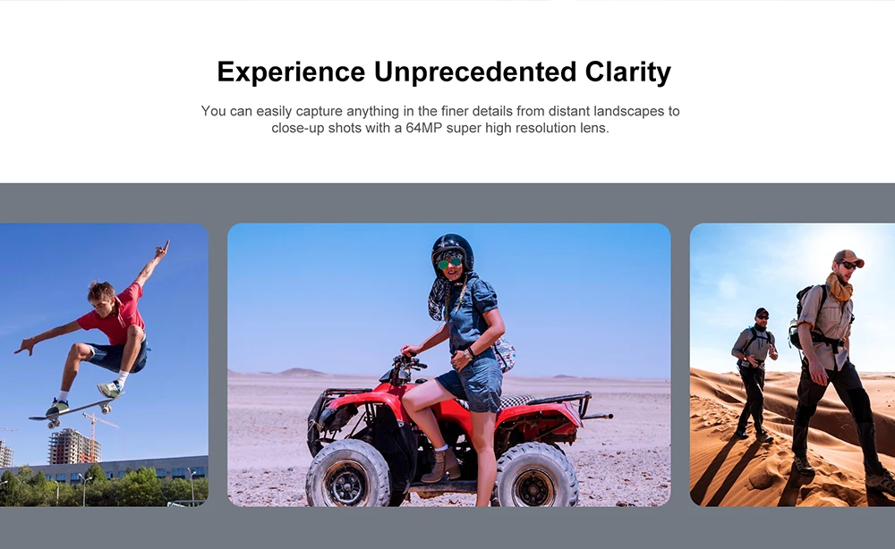 Puedes capturar fácilmente cualquier cosa con detalles más finos, desde paisajes lejanos hasta tomas de primer plano con una lente de súper alta resolución de 64MP.