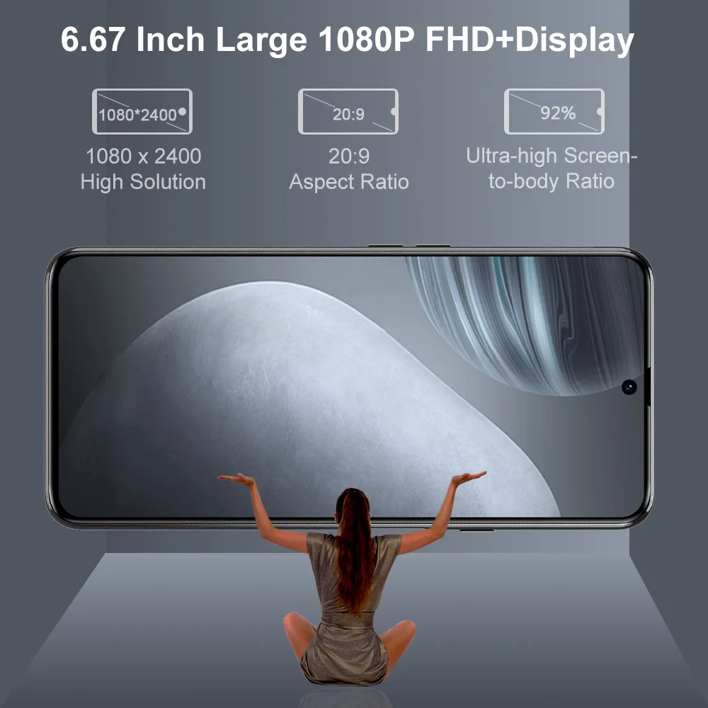 La gran pantalla proporciona un amplio campo de visión, con una alta resolución de 1080*2400P que proporciona imágenes y vídeos más nítidos y vibrantes, le permite tener una experiencia de visualización cinematográfica, te sumerge en la escena real.