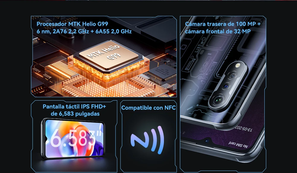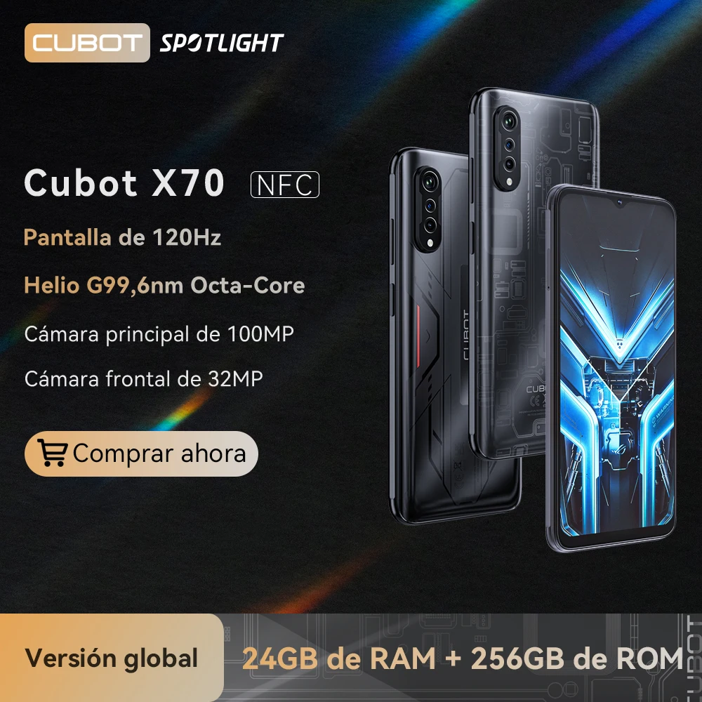 Comprar Cubot X70, Smartphone Android 13, Helio G99, Octa-core, 120 Hz, pantalla FHD+ de 6,583", cámara de 100 MP, 24 GB de RAM (12 GB + 12 GB extendidos), 256 GB de ROM, NFC, moviles baratos y buenos nuevos 2023, 4G movil