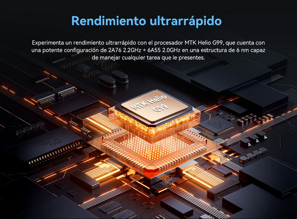 CPU: Helio G99,Octa-Core,6nm 2 * A76 2,2 GHz + 6 * A55 2,0 GHz