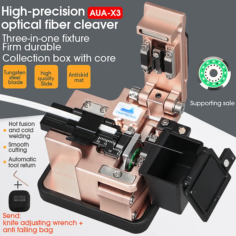 Comprar Cuchilla de fibra de alta precisión AUA-X3 FTTH, Cable de fibra óptica, cuchillo de corte, herramientas, cortador, tres en uno, ranura de abrazadera, 24 hojas de superficie