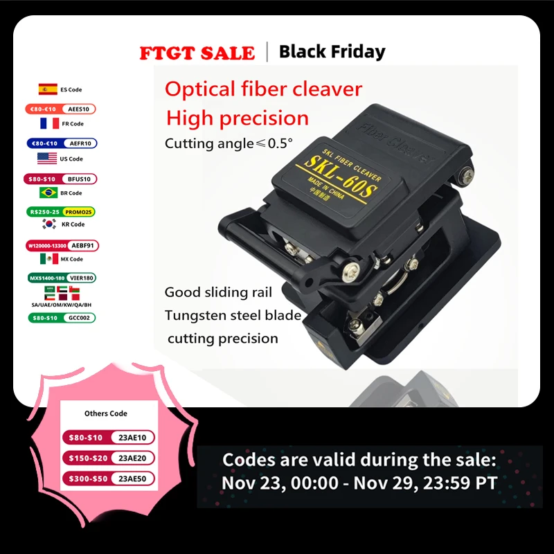 Comprar Cuchilla de fibra de alta precisión FTTH, cuchillo cortador de fibra óptica, 12 hojas de superficie, herramientas de corte de Cable, SKL-60S negro