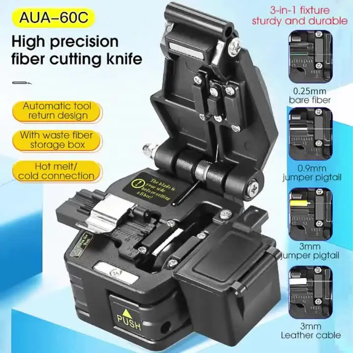 Cuchillo de fibra AUA-60C Cable FTTH Cuchillo de corte de fibra óptica con caja de fibra de desecho Ranura de abrazadera tres en uno16 Hoja de superficie