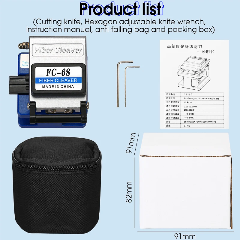 Cuchilla de fibra de FC-6S, cuchillo de corte de Cable de fibra óptica FTTH, herramienta de corte de conexión en frío de fibra óptica, 16 hojas de superficie