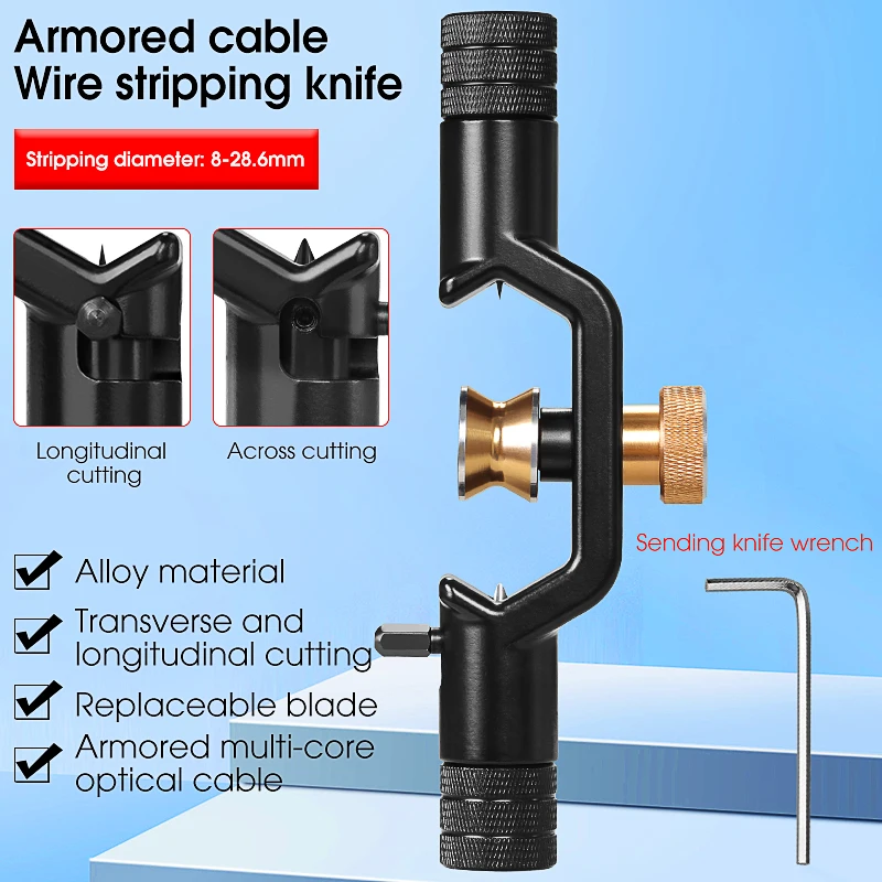 Cuchillo Pelacables Blindado de 8-28,6mm y 4-10mm, Cortadora de Chaqueta de Fibra Óptica, Cortador de Vaina de Cable, Herramientas Pelacables, 1/2/2/4/4mm