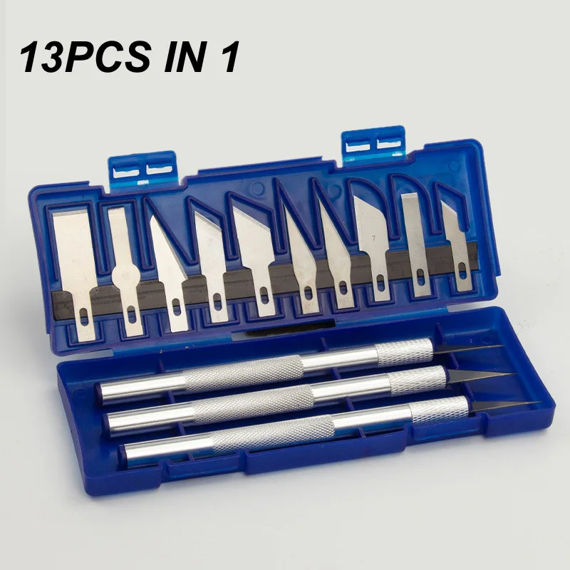 Comprar Cuchillo de tallado de 13 piezas, hoja de corte de papel para escultura artesanal, cortador de grabado de precisión, herramienta de mano antideslizante, juego de reparación de arte DIY