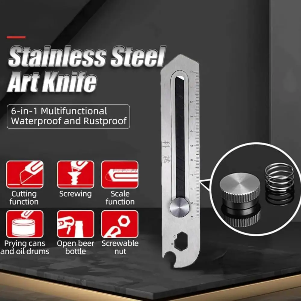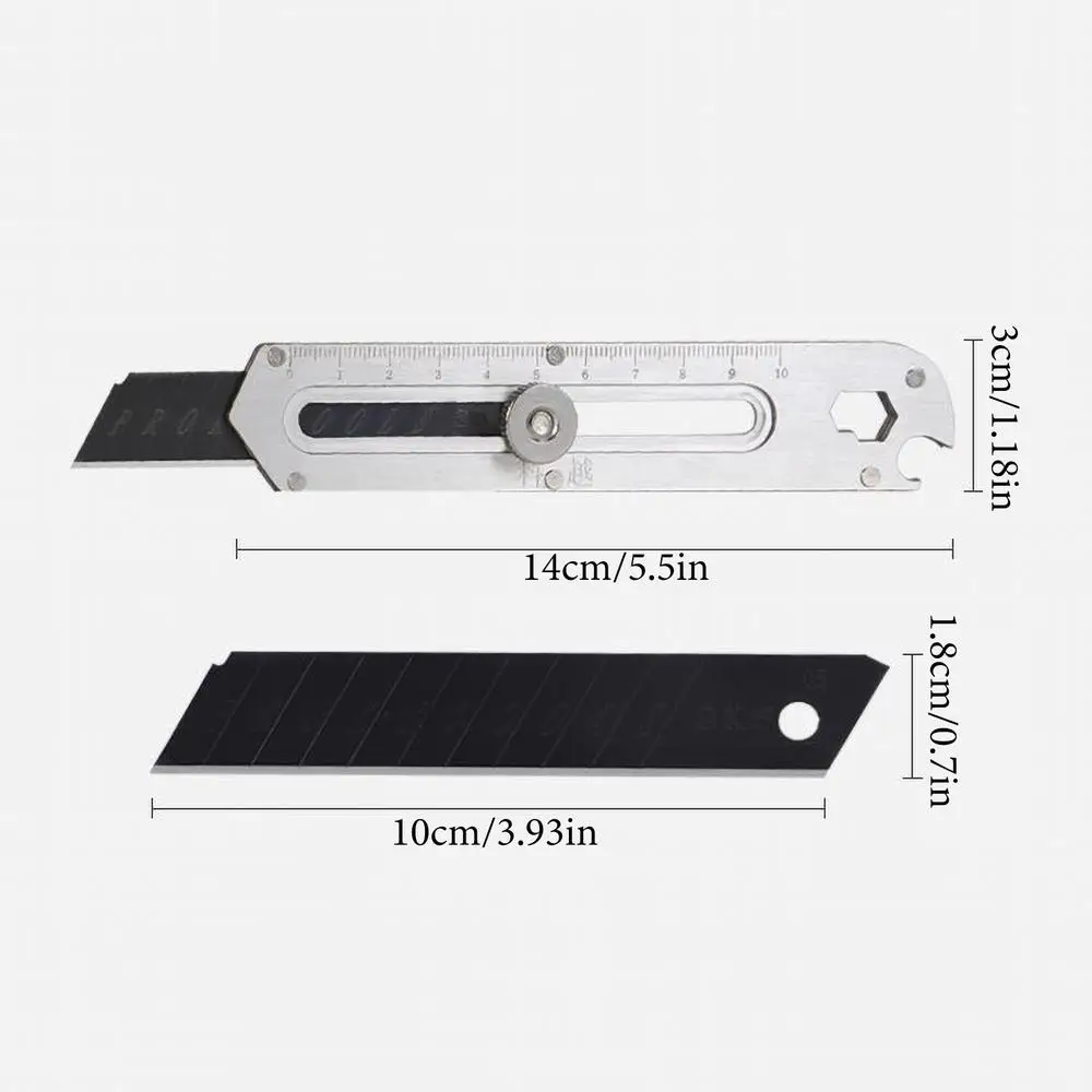 5. Amplias aplicaciones: Con su capacidad para manejar una variedad de tareas diarias, este cortador de utilidad es una herramienta adecuada para hogares y profesionales. Con un martillo de seguridad, una regla y más, proporciona muchos usos para diversas necesidades, por lo que es una adición versátil a cualquier kit de herramientas.
