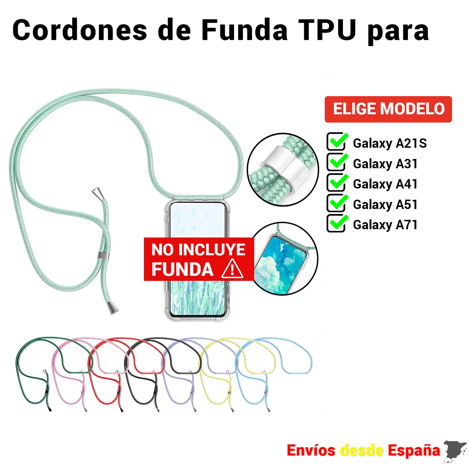 Comprar Cuerda colgante para funda del movil Samsung Galaxy A21S A31 A41 A51 A71. Correa universal facil de instalar