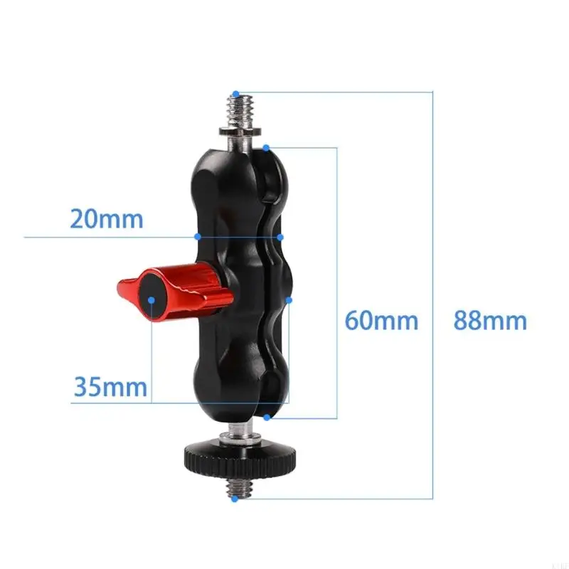 Tamaño del adaptador de cabezal de bola doble L: aproximadamente 88x35x20mm/3,46x1,38x0,79 pulgadas