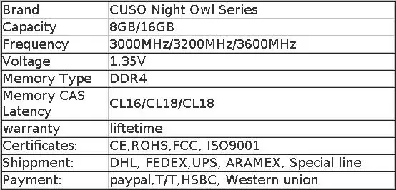 Comprar CUSO-memoria RAM DDR4 de la serie Night Owl para escritorio, 8GB, 2666MHZ, 3000MHz, 3200MHz, alto rendimiento