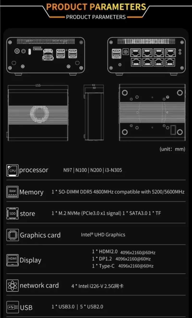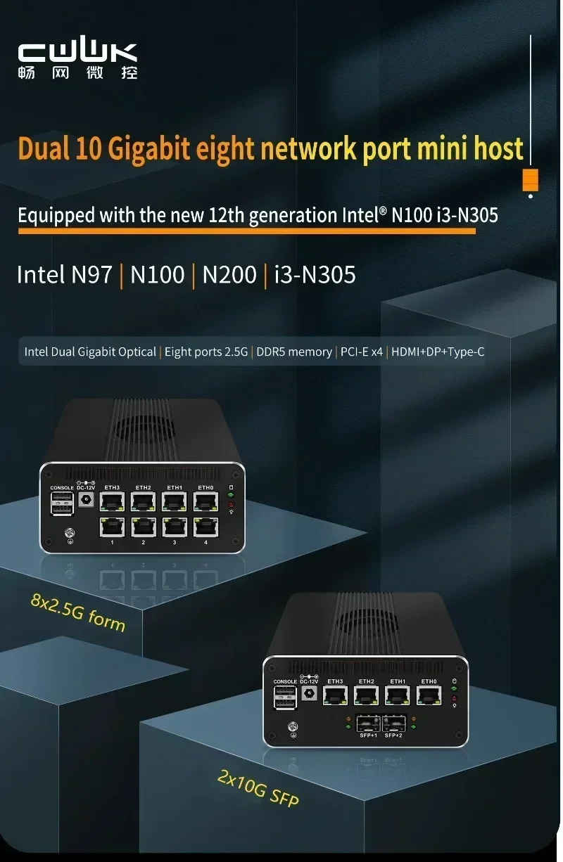 Comprar CWWK 12ta generación Dual 10G Mini Host SFP i3-N305 N100 N200 Gigabit dual ocho puertos 4x i226-V 2.5G DDR5 NVMe Proxmox Server