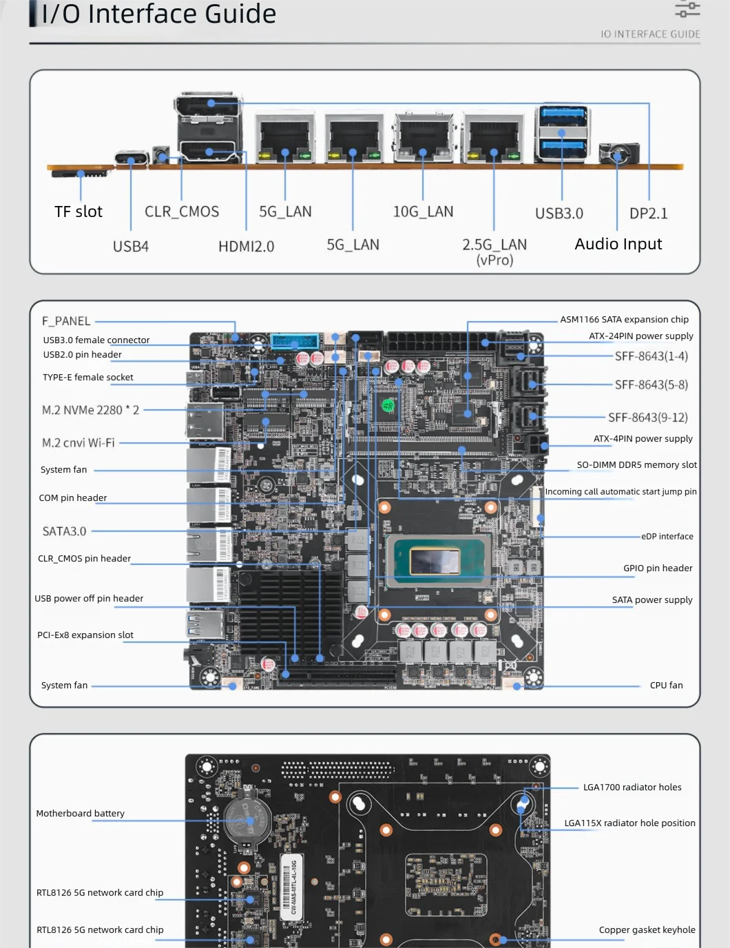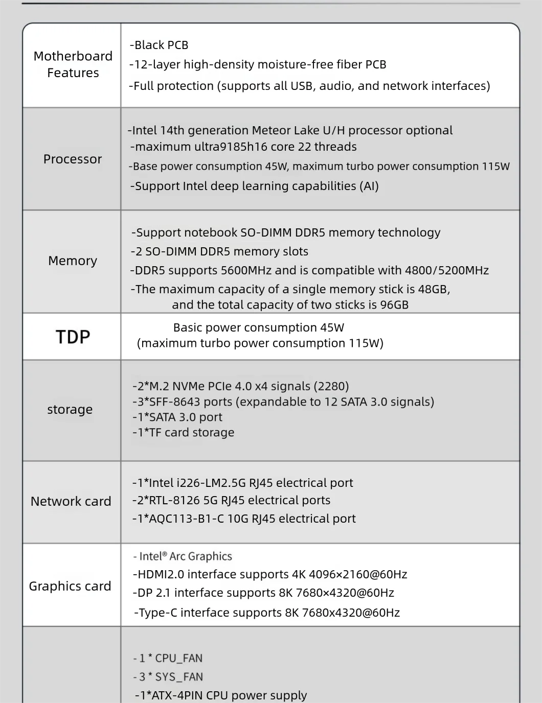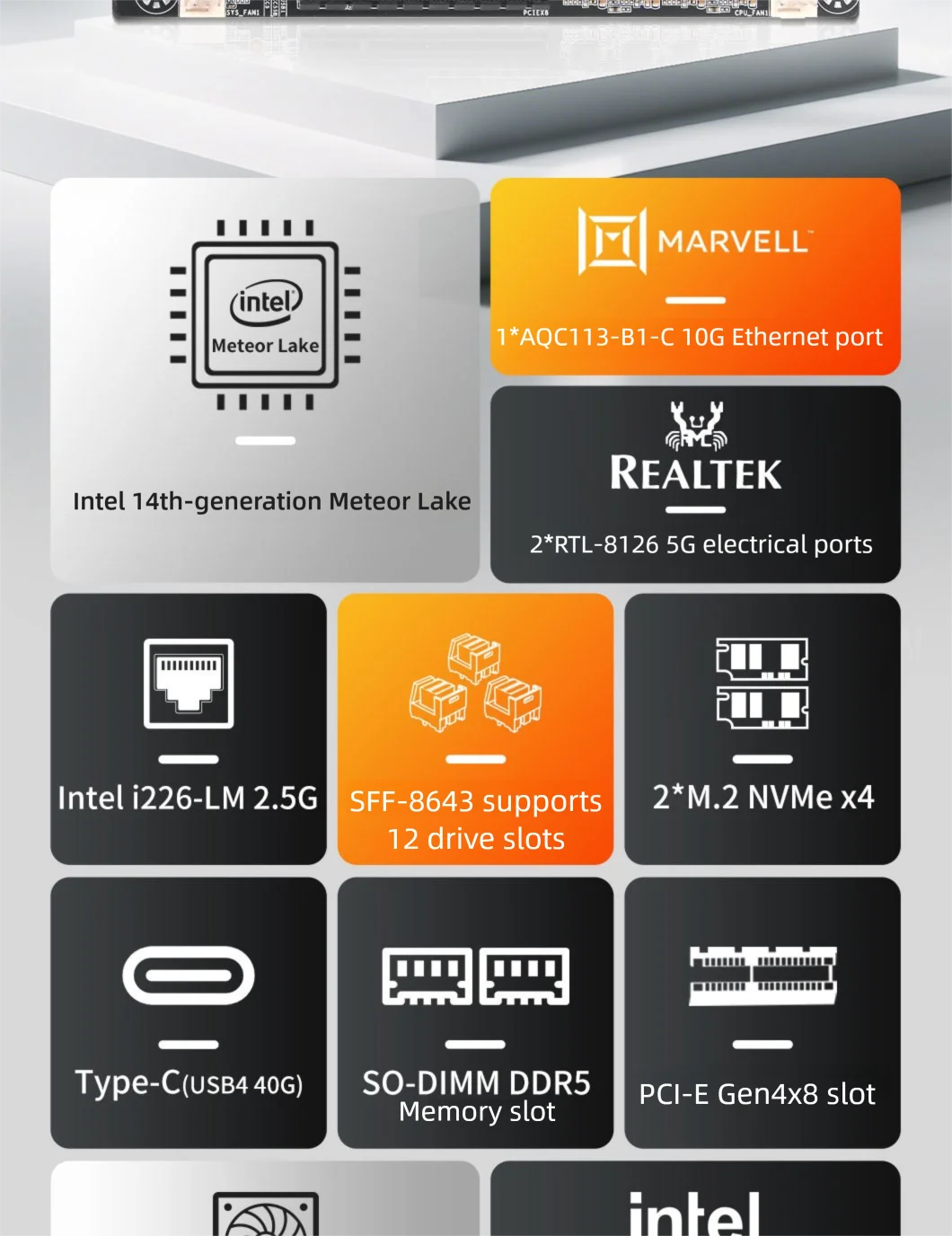 CWWK 14th Gen Ultra 5 125H/7 155H/9 185H NAS placa base 10G 10G puertos Ethernet 12 unidades portátil DDR5 memoria Dual