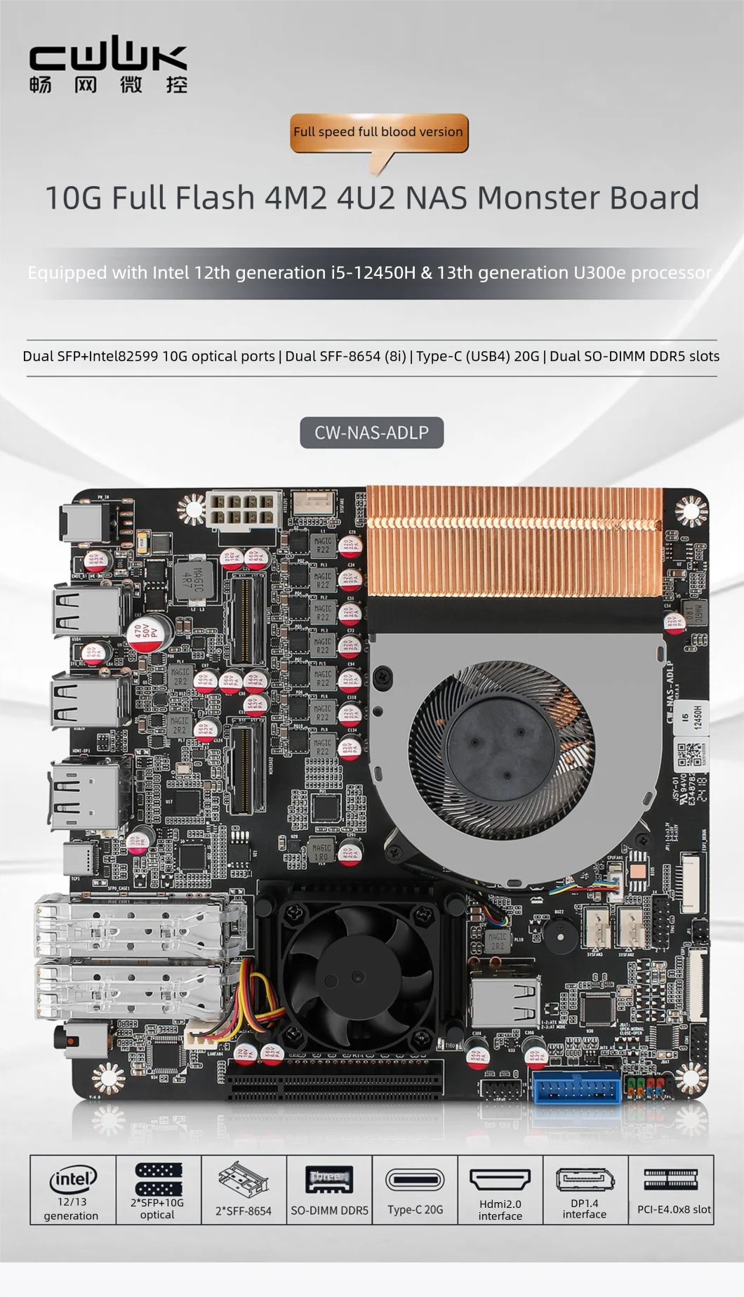 Comprar CWWK i5-12405H de 12. a generación y placa NAS U300e Processon 10G full flash 4M2 4U2 de 13. a generación