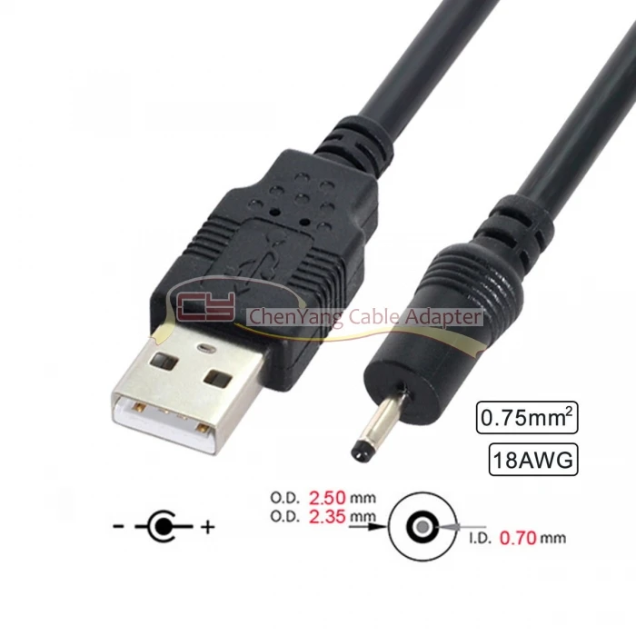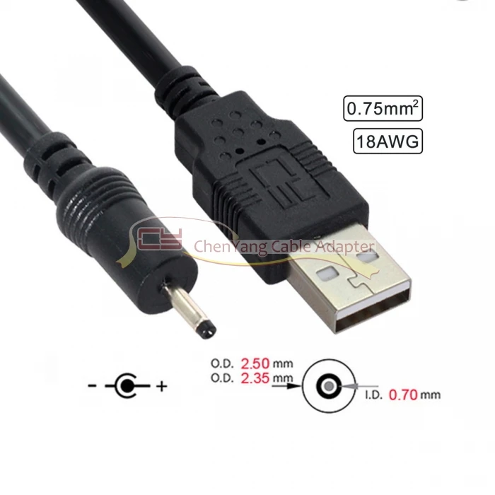 18AWG 0,75mm * 2 USB 2,0 tipo A macho a DC 2,50mm 2,35mm 0,7mm enchufe de alimentación 5V Cable 100cm