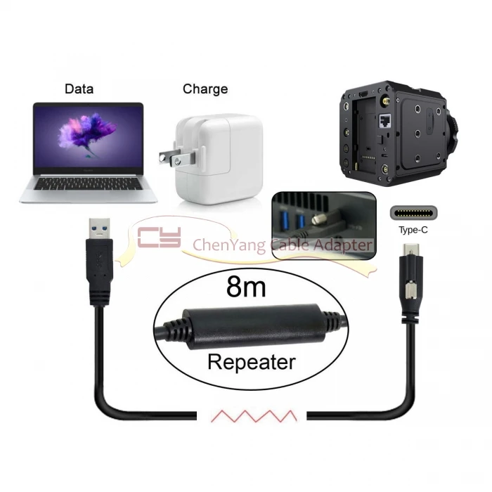 8 metros USB 3,1 tipo C bloqueo de un solo tornillo a USB3.0 estándar tipo de montaje de Cable de datos para grabadora de cámara Industrial y PC portátil y disco