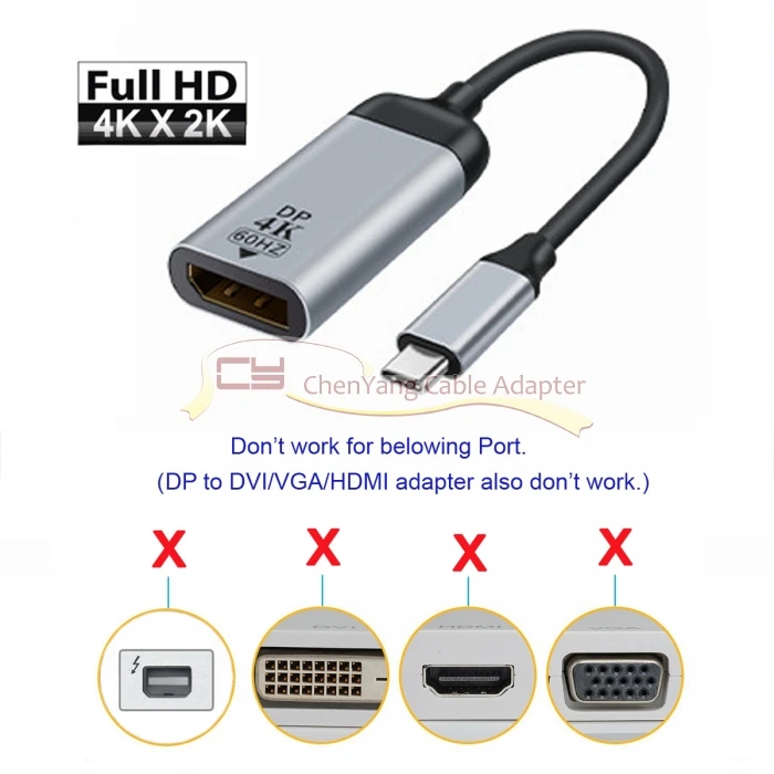 Comprar CY-adaptador de Cable USB-C tipo C a Displayport, Monitor DP, 4K, 2K, 60hz, para ordenador portátil