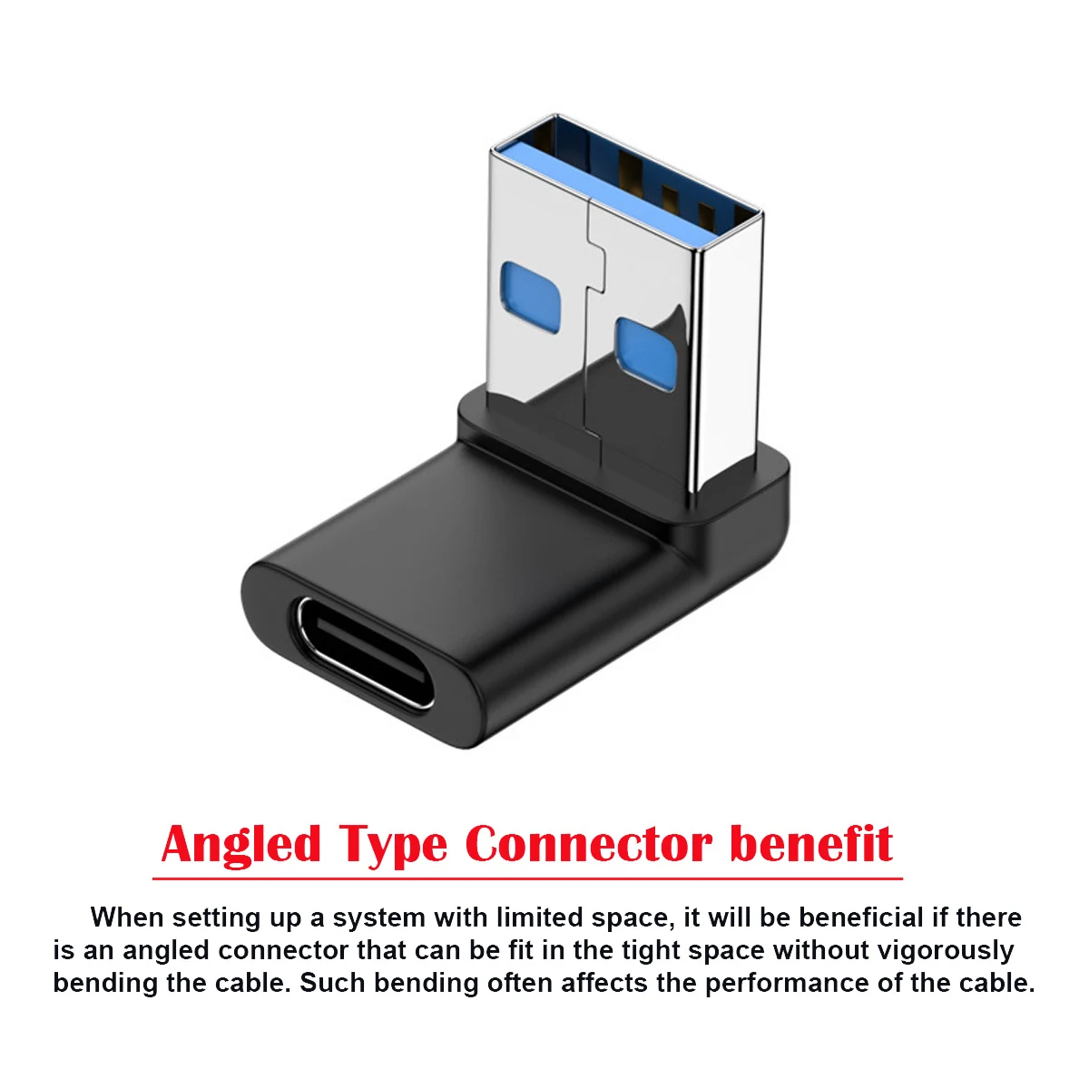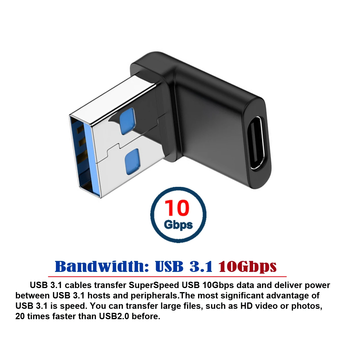 (10) Adaptador DE DATOS macho tipo C hembra hacia arriba en forma de U opuesta en ángulo trasero a USB 3,0 A para computadora portátil de escritorio