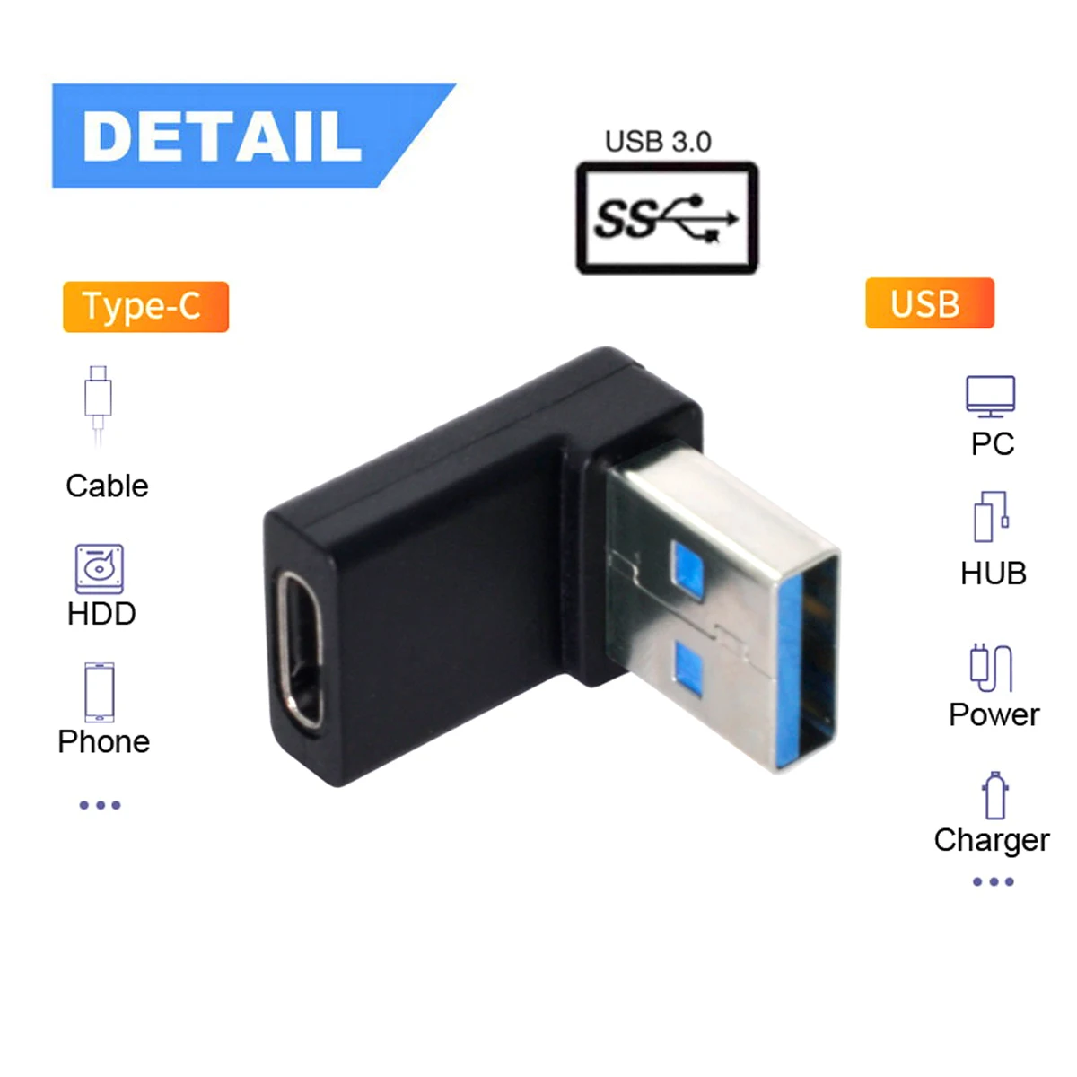 Adaptador de datos en ángulo macho de tipo C hembra a USB 3,0 A para computadora portátil de escritorio