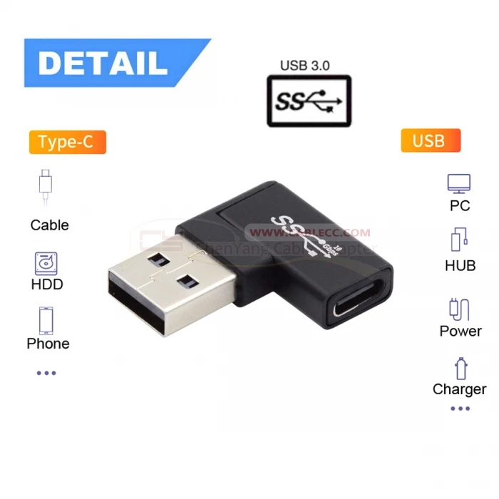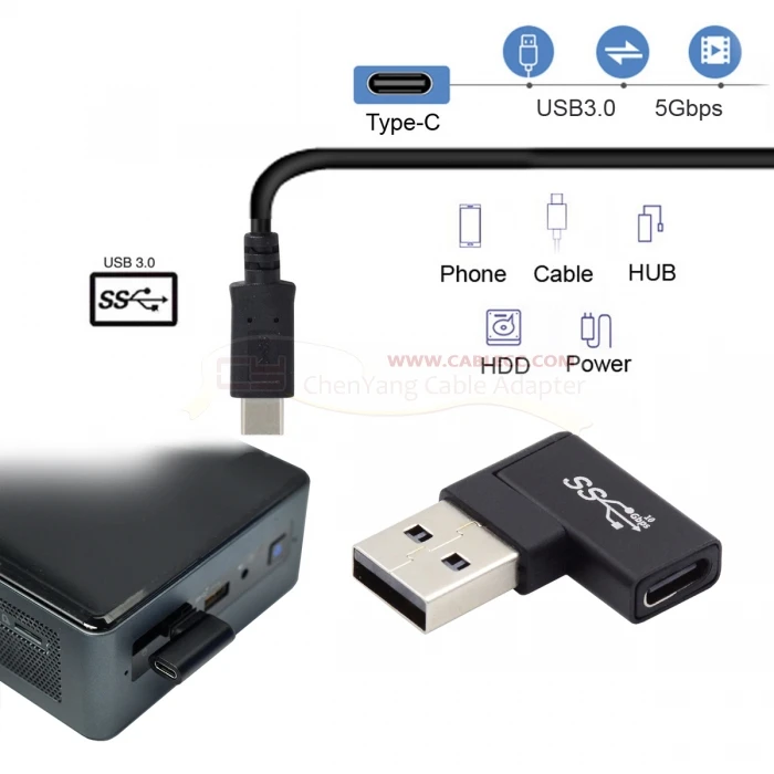 Comprar CY-Adaptador de datos para ordenador portátil y de escritorio, adaptador de ángulo tipo C hembra A USB 3,0 A macho, USB-C
