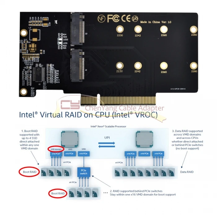 CY NVME M.2 AHCI Dual 2X a Gen3 X8 X16 PCIE Express 3,0 Tarjeta Raid VROC Raid0 Hyper Adapter