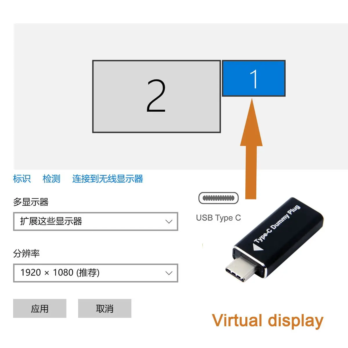 Adaptador de pantalla virtual CY, emulador de pantalla fantasma sin cabeza, tipo C, DDC, EDID, 1920x1080p, 60Hz