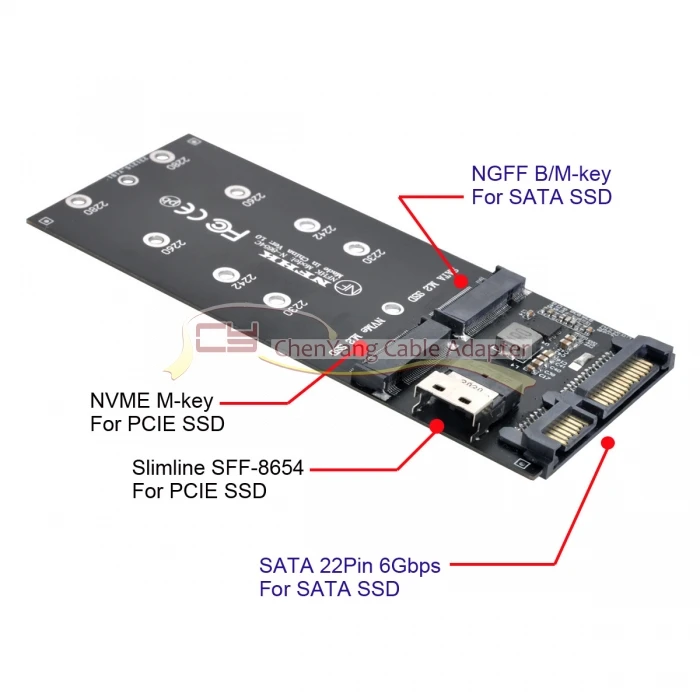 Adaptador CY SATA NVME PCIe SSD, Kit de 2 a U2, NGFF M-Key a Slimline SAS para placa base