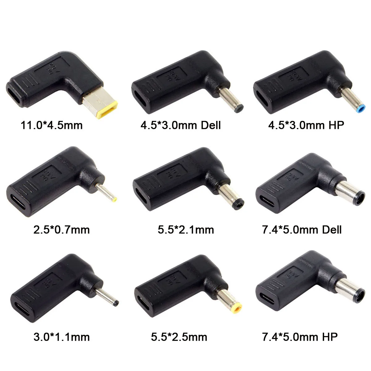 USB 3,1 tipo C, enchufe de CC rectangular, 5,5mm, 4,0mm, 7,4mm, 3,0mm, 2,5mm, adaptador de MM, disparador emulador PD, 90 grados en ángulo