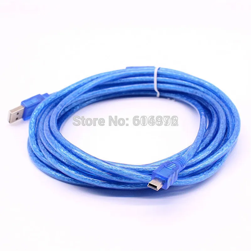 Venta al por mayor 3 M 10FT 5M 16FT 10M 33FT alta calidad blindado USB 2,0 a Mini 5 pin M/M Cable DE DATOS azul A macho a 5 P B macho para mp3 mp4 GPS