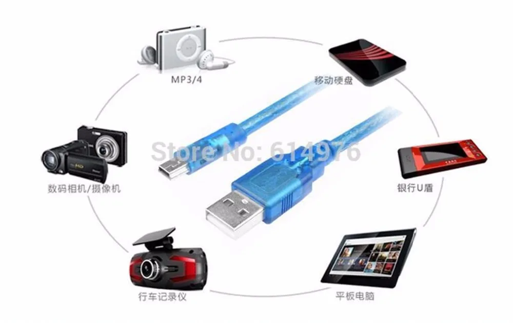 Comprar Cy-Cable de datos blindado USB 2,0 A Mini 5 pines, Cable de datos azul A macho A 5 P B macho para mp3, mp4, GPS, coche, 10, 16 y 33 pies