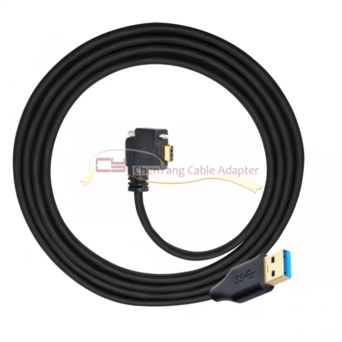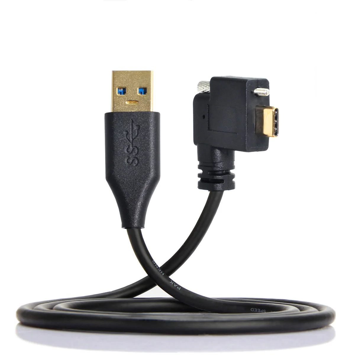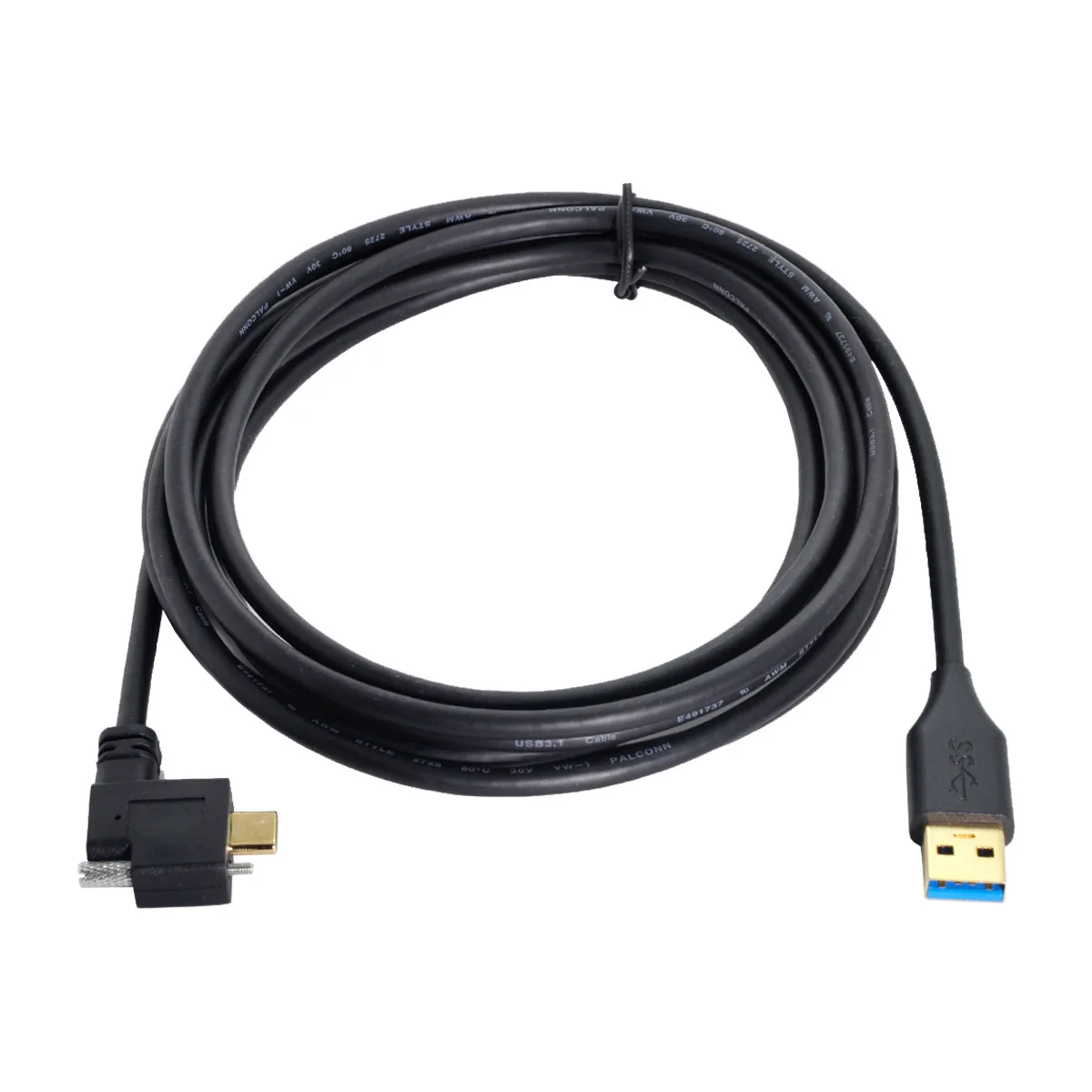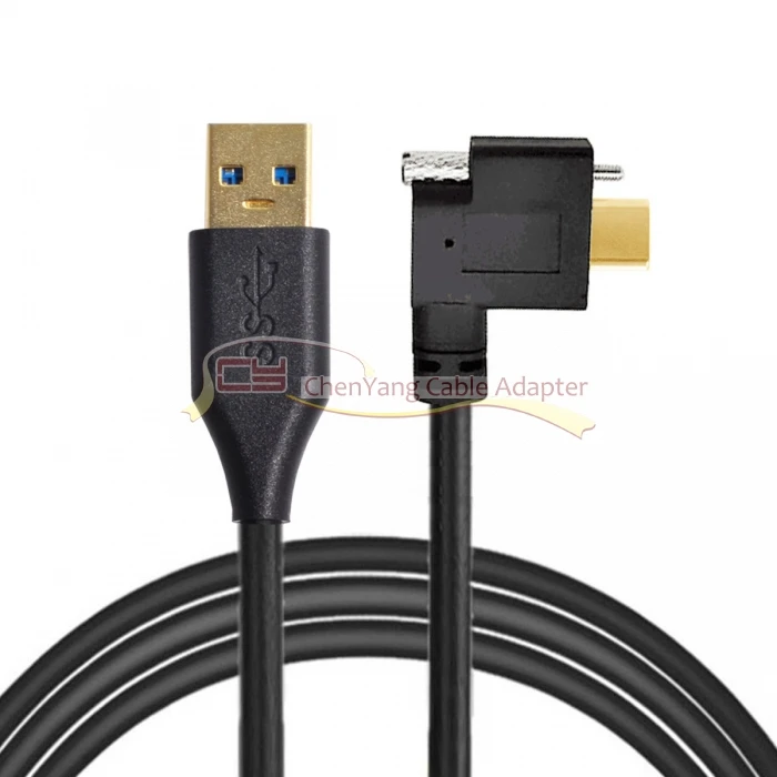 Comprar CY-Cable de datos de bloqueo para cámara, USB 3,0 estándar a izquierda y derecha, ángulo de 90 grados, USB 3,1 tipo C, tornillo único