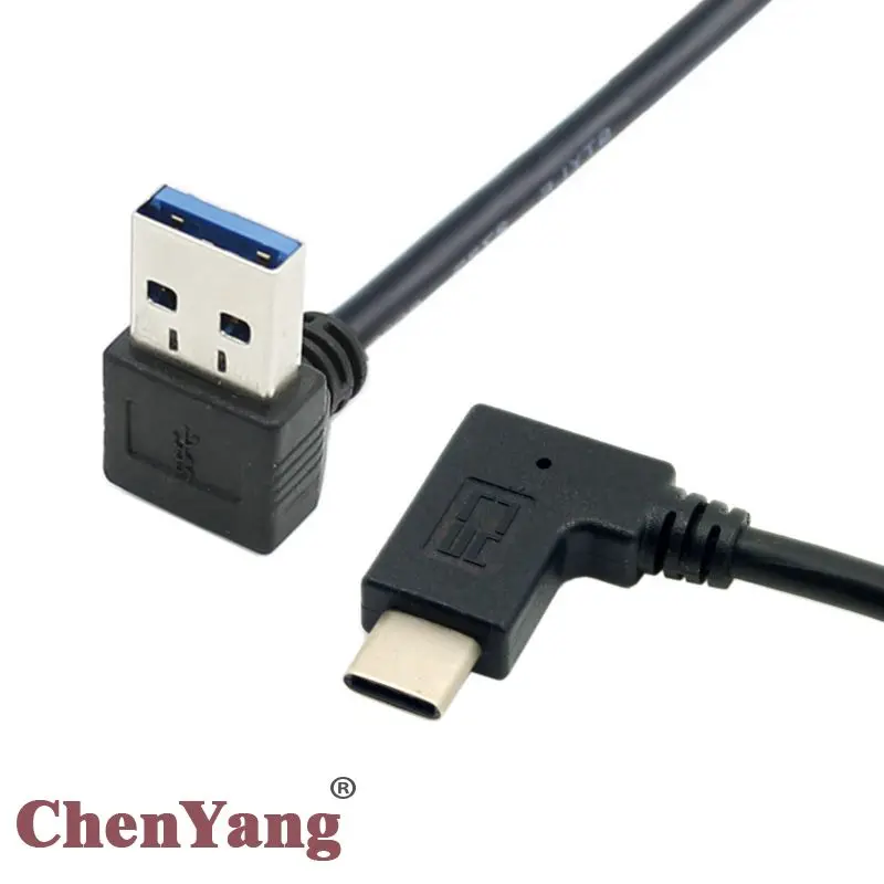 Conector macho USB 3,0 3,1 tipo C a 90 grados en ángulo hacia abajo Cable DE DATOS macho tipo A