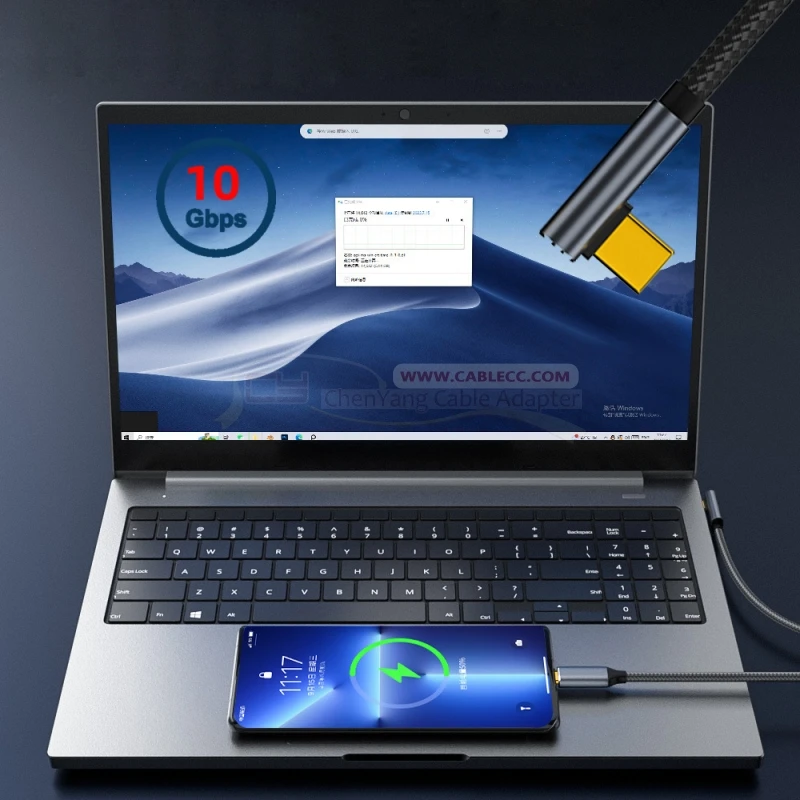 Cable de datos de 90 grados de perfil bajo en ángulo tipo-c macho a macho USB3.1 10Gbps 100W para teléfono portátil