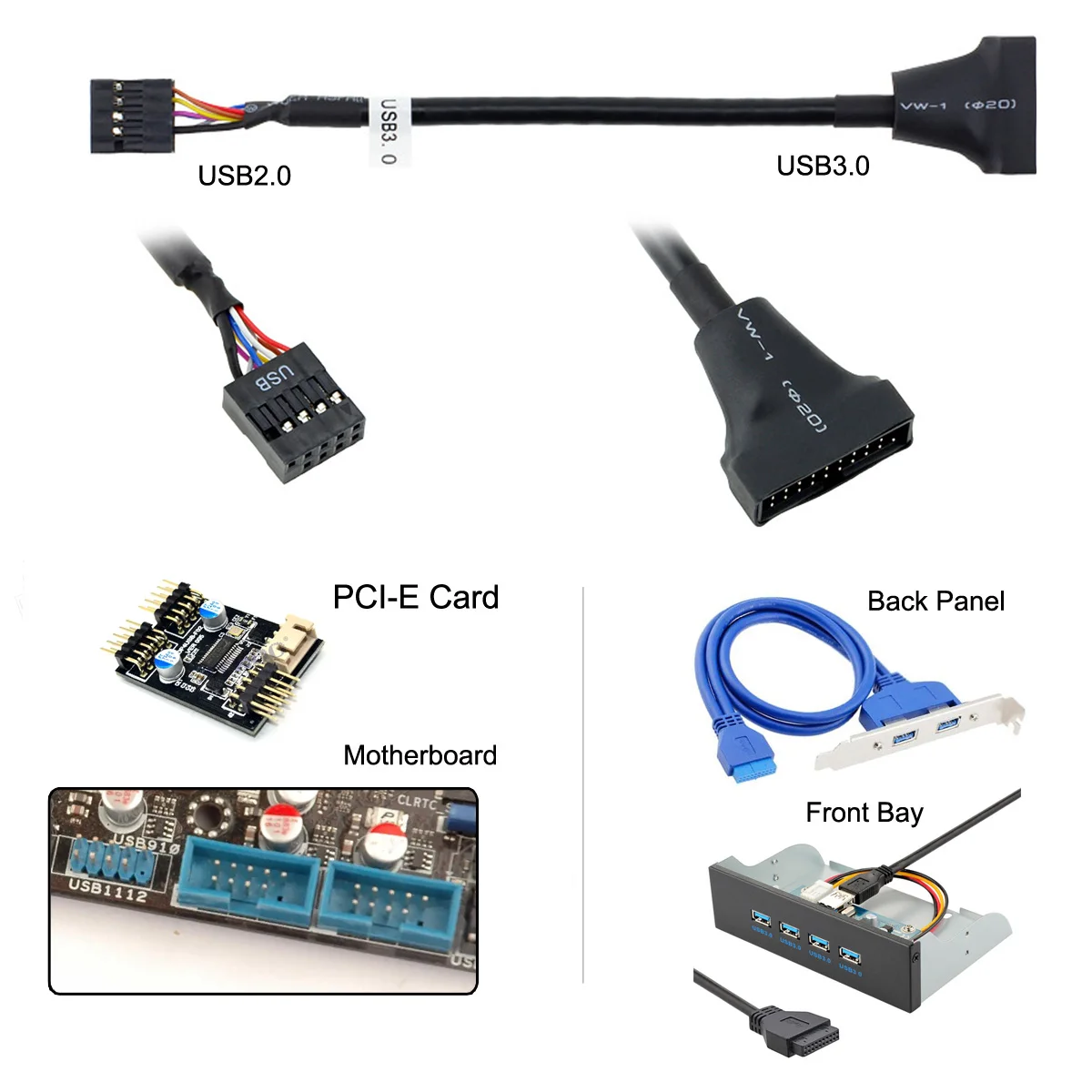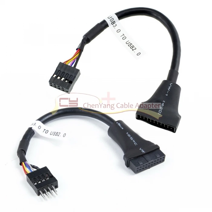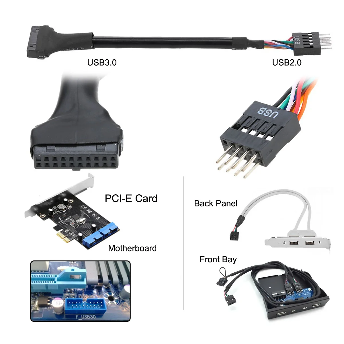2 piezas USB 2,0 9 pines a USB 3,0 20 pines Cabecera de carcasa Cable hembra Reversible para placa base