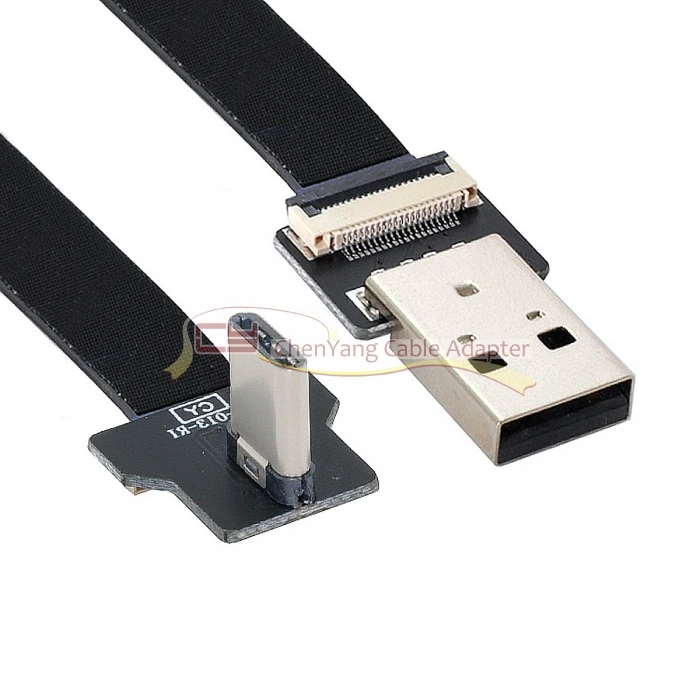 Cable FPC Delgado plano de datos macho tipo A macho a tipo C macho USB 2,0 en ángulo recto para FPV, disco y teléfono