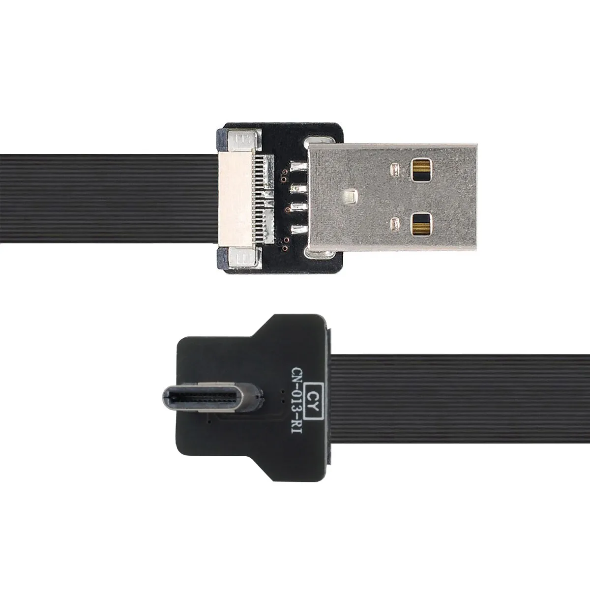 Comprar CY-Cable USB 2,0 tipo A macho A USB-C tipo C macho, Cable de datos plano y delgado FPC para FPV, disco y teléfono