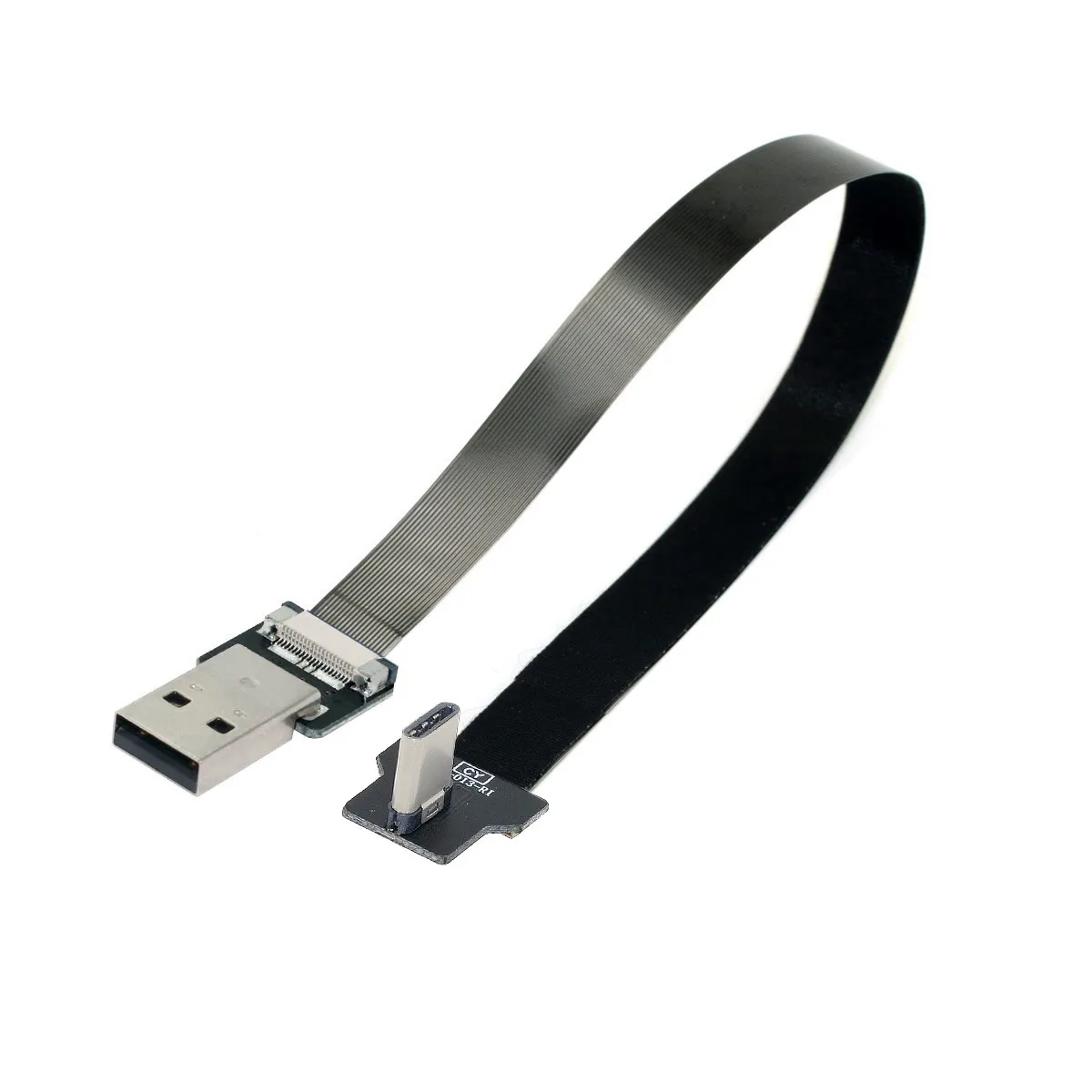 Cable FPC Delgado plano de datos macho tipo A macho a tipo C macho USB 2,0 en ángulo recto para FPV, disco y teléfono