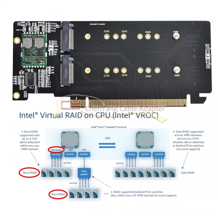 Comprar CY Chenyang 4X NVME M.2 AHCI a PCIE Express 3,0 Gen3 X16 tarjeta Raid VROC Raid0 Hyper adaptador