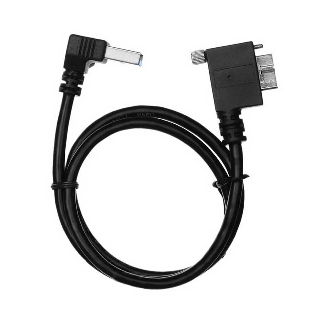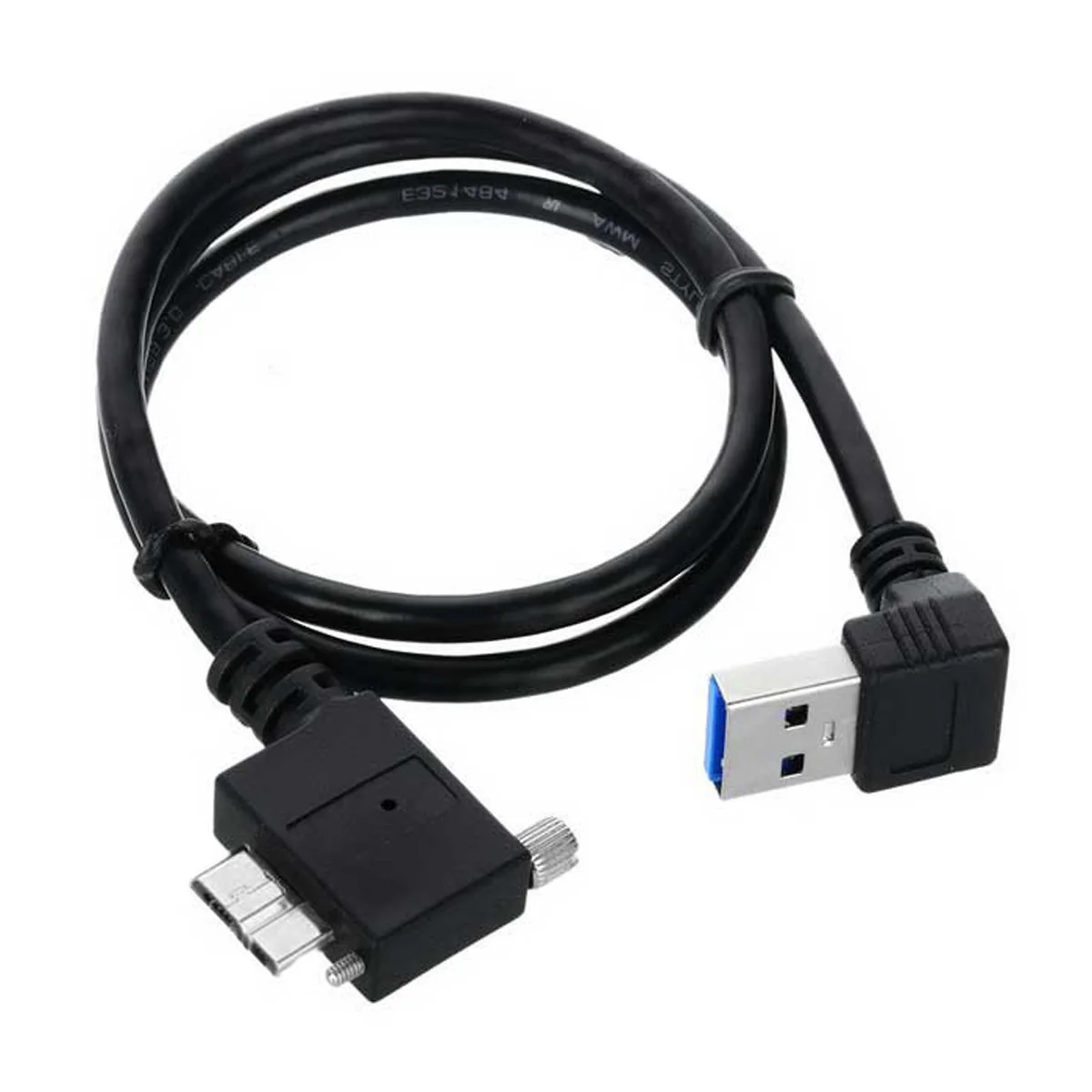Dirección hacia abajo en ángulo recto 90 grados USB 3,0 A enchufe a Micro B enchufe tornillos de bloqueo en ángulo izquierdo Cable de panel
