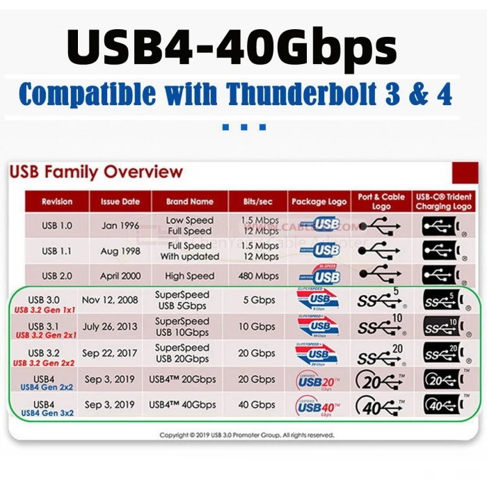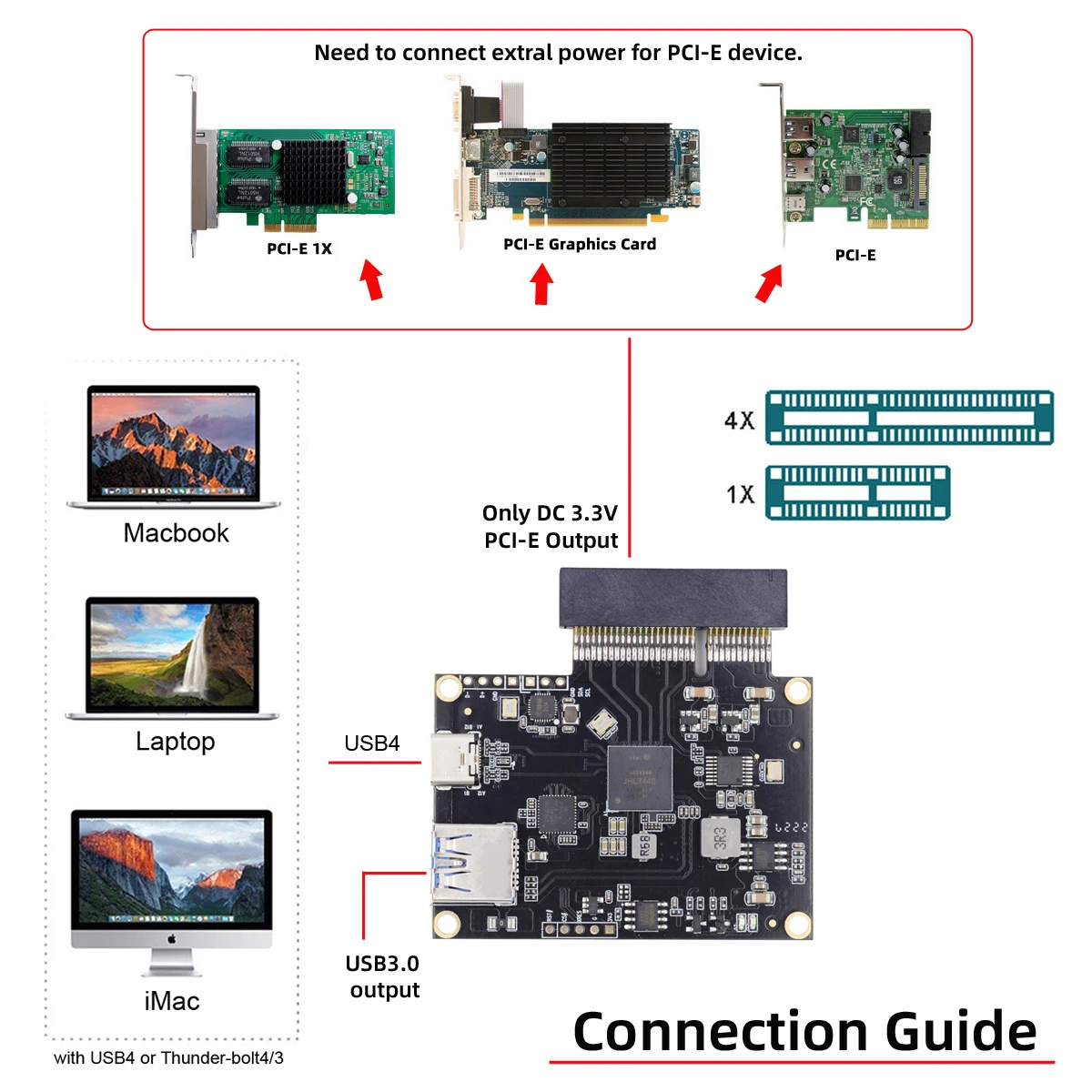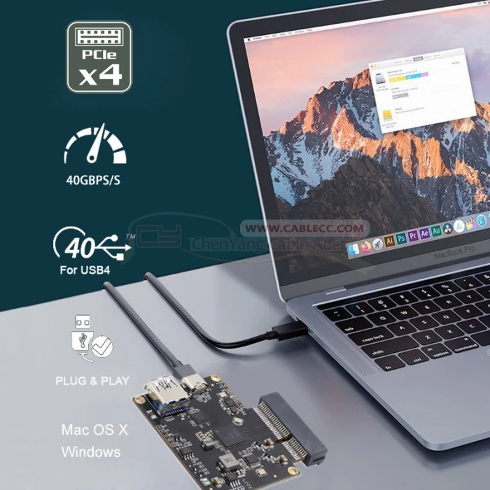 Cy JHL7440 Chipset PCI-E a USB4 Tarjeta Tipo-C Puertos USB4.0, Tarjeta PCI Express SSD Convertidor 4x40Gbps con Cable para Tarjeta Gráfica
