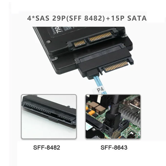 Comprar CY-Mini SAS SFF-8087 interno, 50cm, 36 Pines, servidor a 4 SFF-8482, disco duro SAS y Cable de alimentación SATA