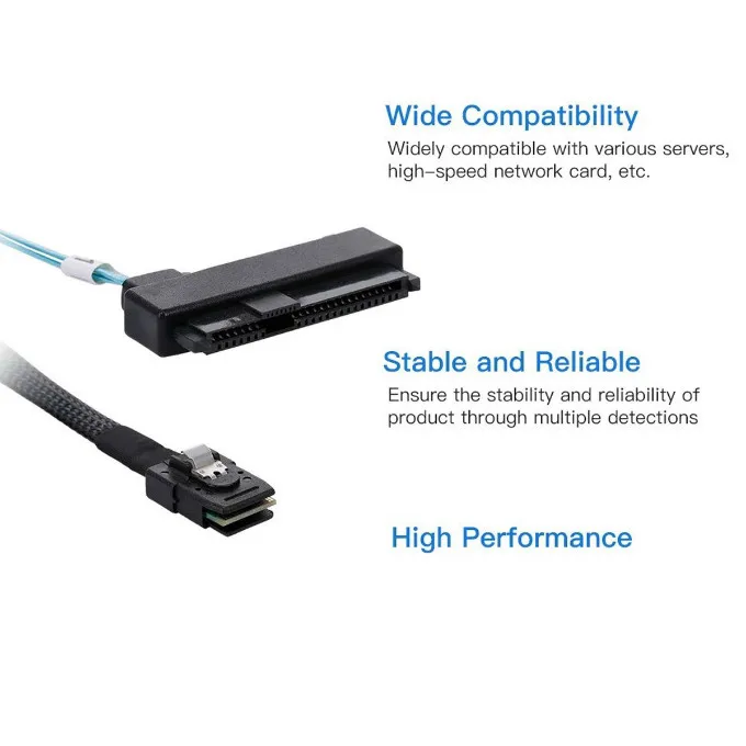 Le permite conectar, por ejemplo, un controlador con conector mini SAS de 36 pines (SFF 8087) a 4 SAS (SFF 8482) HDD.