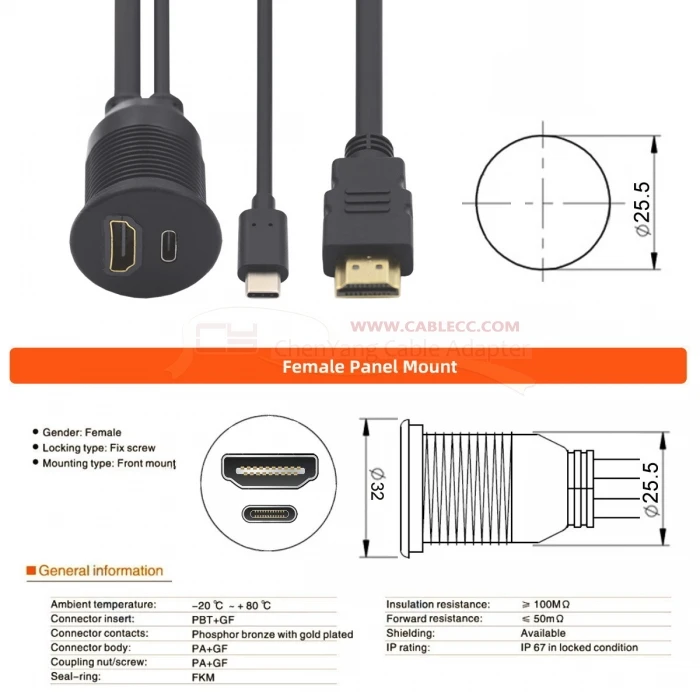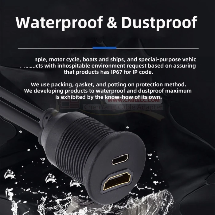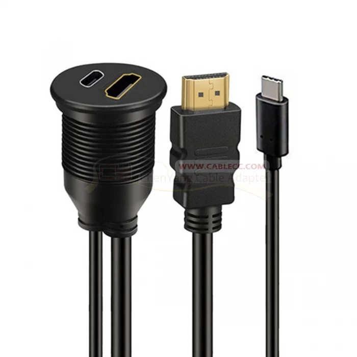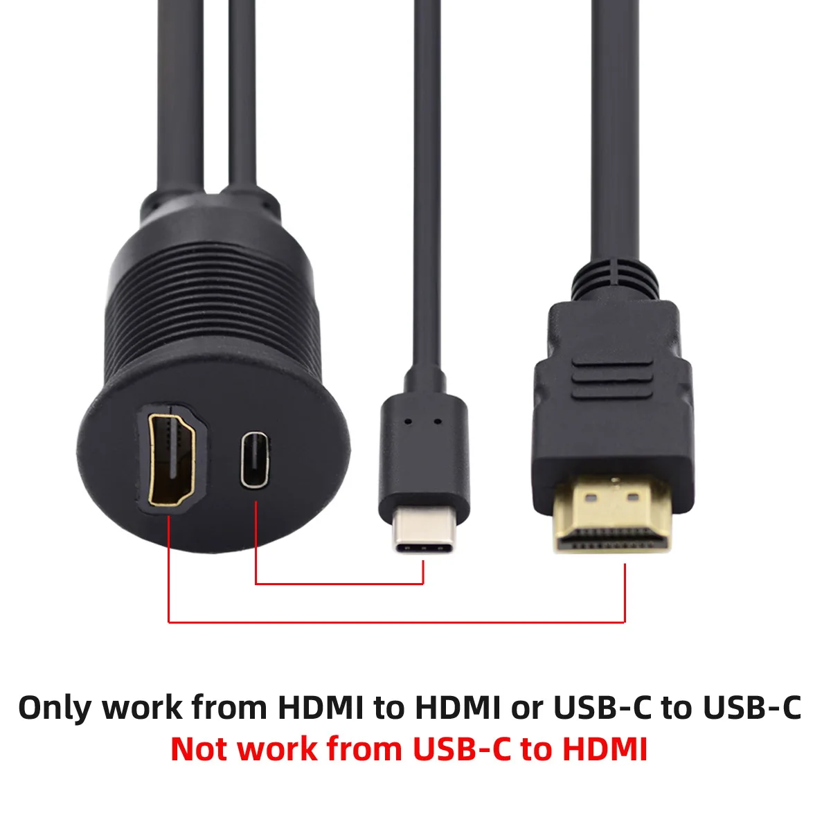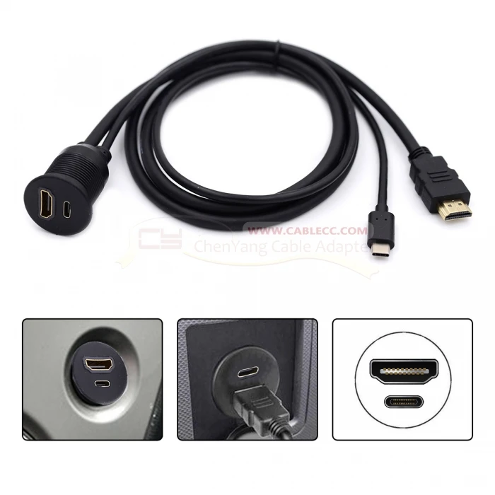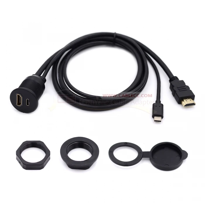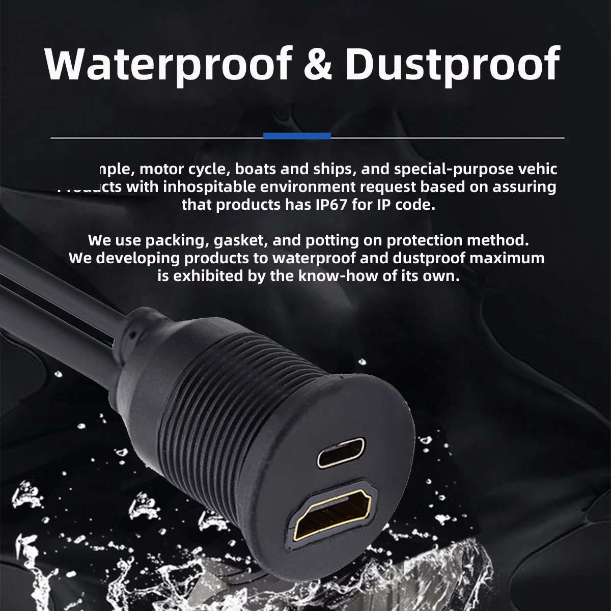 CY resistente al agua, tipo C, USB 3,1 y HDMI 4K, enchufe, Cable, extensión de montaje empotrado para coche, Panel de salpicadero