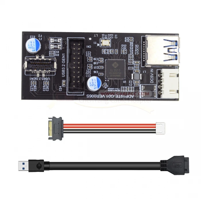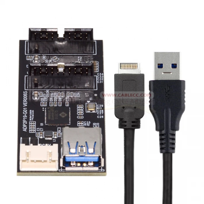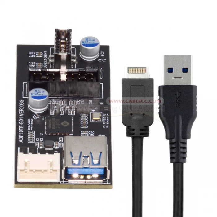 Cabezal único de 19/20 pines a USB 3,0 19/20 pines y tipo E MujerPuertos dualesHUB divisor 5GbpsAdaptador tipo PCBA