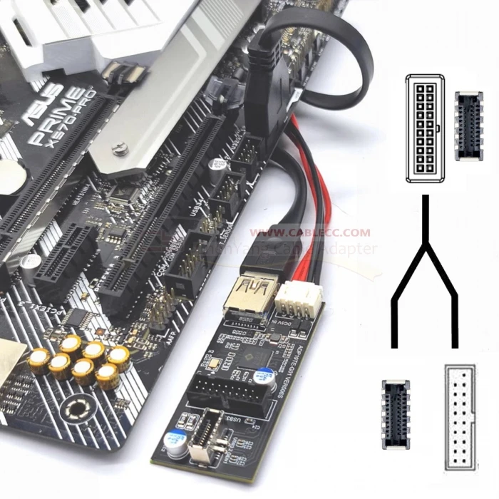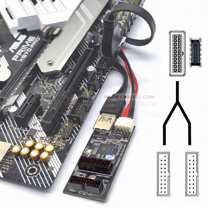 Doble salida USB 3,0 de 20 pines: compatible con la mayoría de los dispositivos USB 3,0 de 20 pines como panel frontal, cable, concentrador USB, lector de tarjetas, etc.